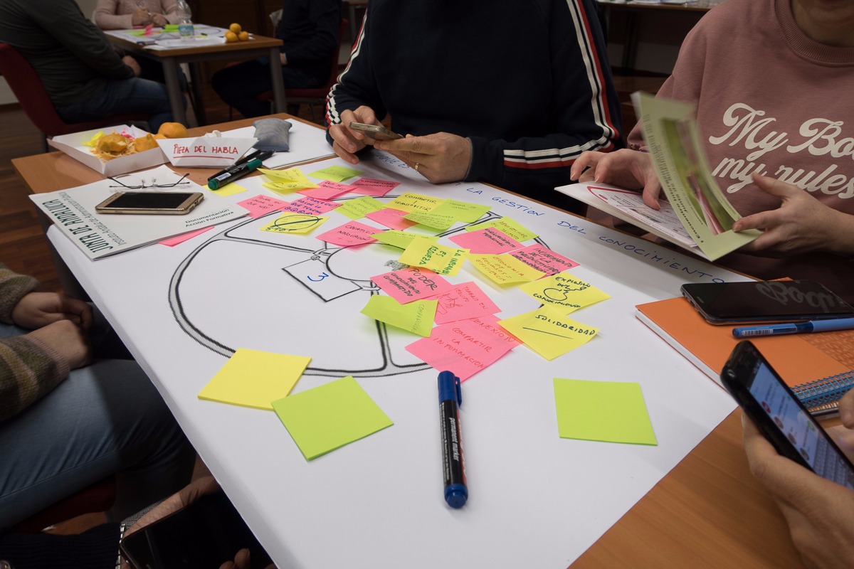 Desde un «speed meeting» nada más llegar, para que las personas, venidas de diferentes provincias de Andalucía y con una gran diversidad de áreas funcionales, edades, competencias y conocimientos, rompieran el hielo, hasta la elaboración de un primer canvas de proyecto, pasando por un World Café sobre la gestión del conocimiento o una Plaza de las Embajadas (prometo compartir más adelante el documento de cosecha de esta formación-acción, donde se expliquen las metodologías empleadas y todo lo aprendido), la convivencia ha arrojado el cumplimiento con creces de los dos objetivos fundamentales para la que se diseñó: crear una comunidad con un fuerte compromiso y vinculación, y lanzar proyectos de gestión del conocimiento.